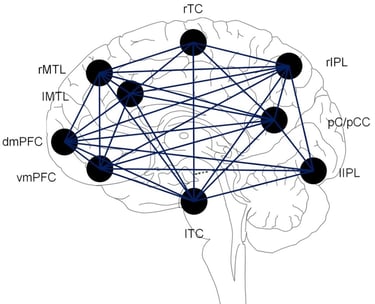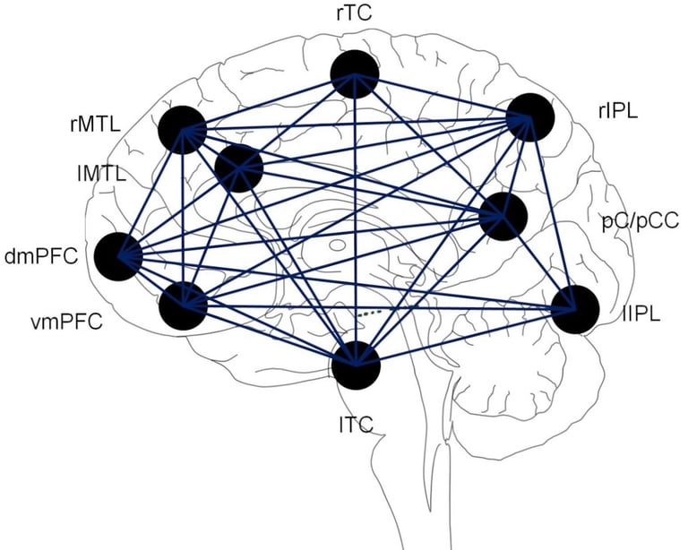 La red neuronal por defecto, conocida como Default Mode Network (DMN), es un conjunto de regiones del cerebro que se activa especialmente cuando existe una ausencia de estimulación cognitiva, en otras palabras, cuando no estamos centrados en el entorno externo, sino en nuestra propia mente. Es la red que entra en funcionamiento cuando pensamos sobre nosotros mismos, recordamos el pasado, anticipamos el futuro o damos vueltas a una situación. Lejos de ser algo negativo, este sistema es esencial para construir nuestra identidad, aprender de la experiencia y dar sentido a lo que vivimos. El problema no está en su existencia, sino en su funcionamiento.